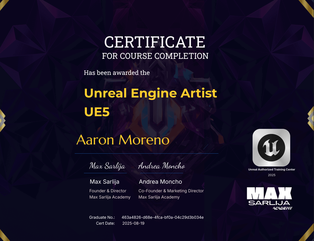 Soy instructor autorizado por Epic y Fundador de Max Sarlija Academy hoy es Unreal Authorized Training Center , tambien soy especialista en Unreal Engine y tecnologías aplicadas a la producción virtual, publicidad y espectáculos inmersivos. Con más de 15 años de experiencia en formación y desarrollo creativo, ha liderado workshops, charlas y proyectos en toda Latinoamérica y Estados Unidos, combinando arte, tecnología e innovación educativa, capacitando en mis cursos como a empresas/estudios.